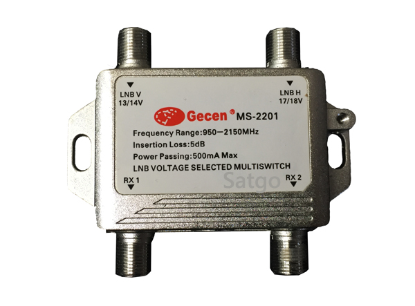 | 衛星用2進2出訊號選擇器,可將線性極化(H/V)衛星訊號分接給多部衛星接收機使用、最多支援2台衛星接收機