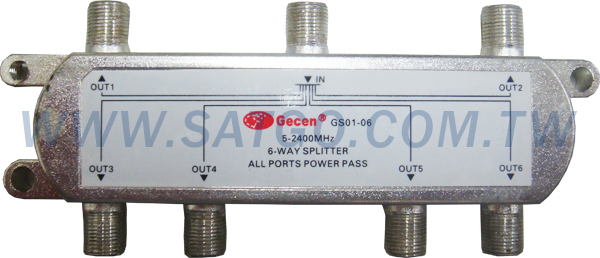 | 全頻段六分配器,適用BS、衛星、數位電視及有線電視訊號分接使用