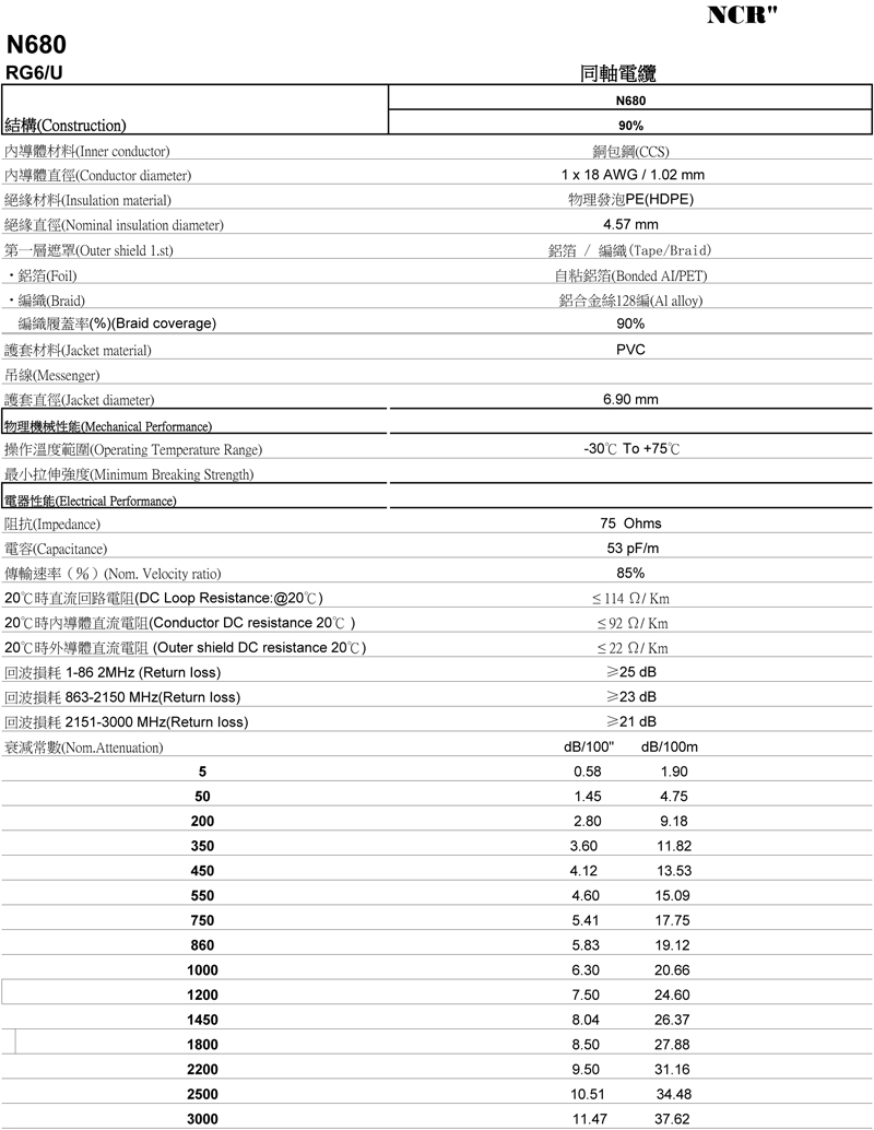 衛星電視、有線電視、數位電視訊號傳輸用,高頻傳輸可支援至