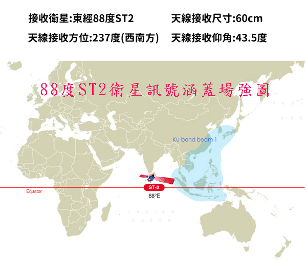 ST2機上盒、LNB集波器、衛星天線、衛星纜線、纜線接頭