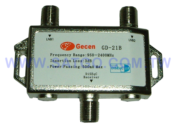 | 2路衛星訊號選擇器,切換器會偵測接收機選擇的線路,決定LNB1或是LNB2的衛星訊號進入衛星接收機